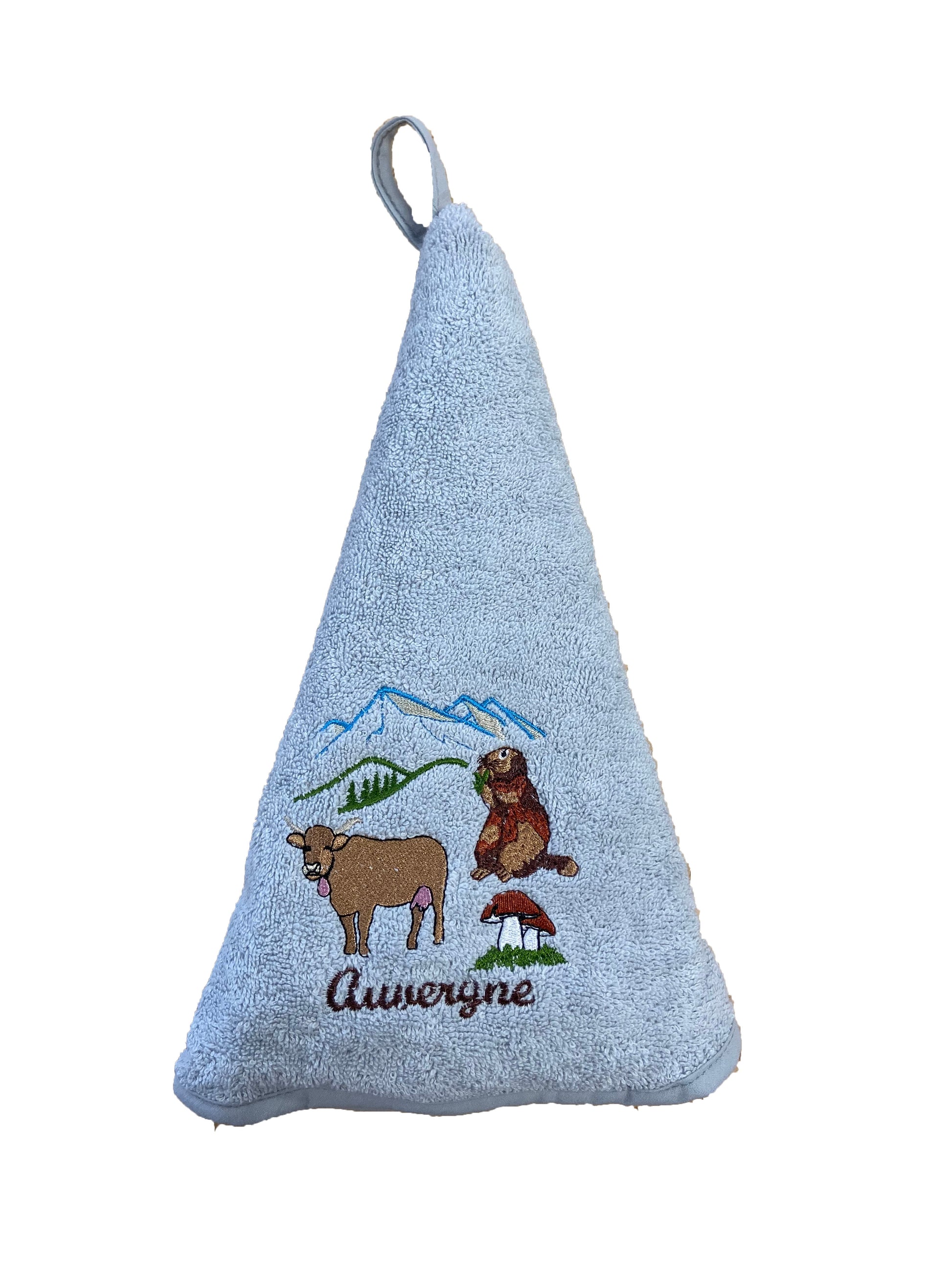 Ramène un bout d’Auvergne chez toi avec ce magnifique torchon rond brodé d’une vache, de montagnes, de champignons… et d'une adorable loutre !
